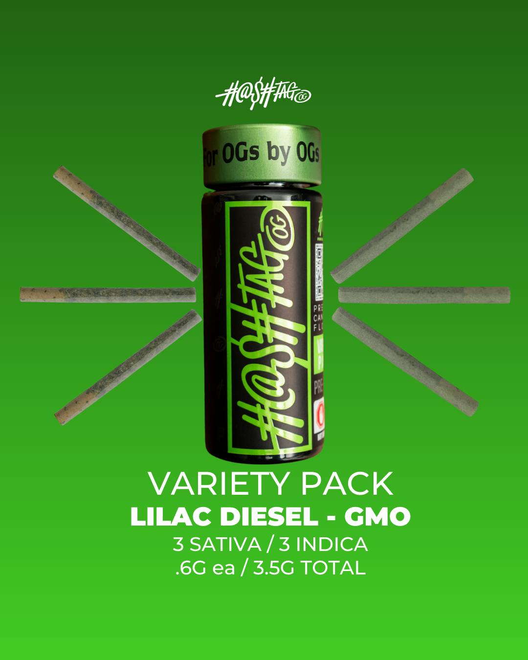 HashtagOG | Lilac Diesel & GMO | 3x Sativa/3x Indica 0.6g Prerolls